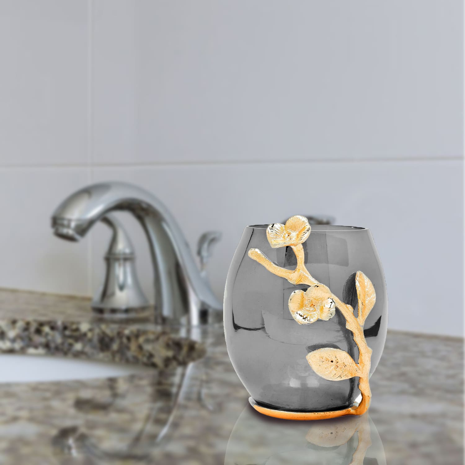 Add a glamorous touch of elegant style to your bathroom with this dazzling tumbler in black luster gold finished with brass branch. This tumbler will simply add a perfect modern touch to your bathroom.